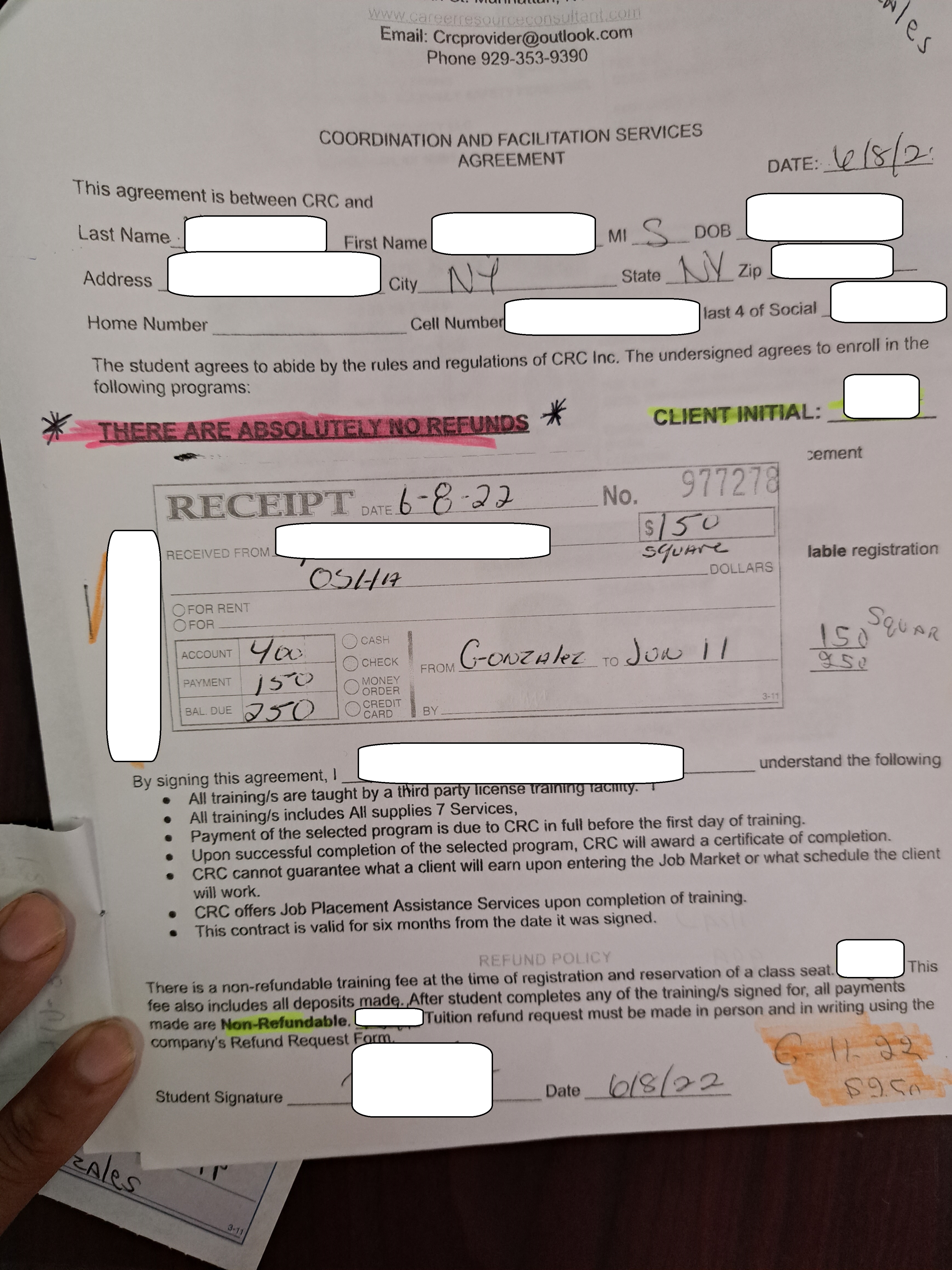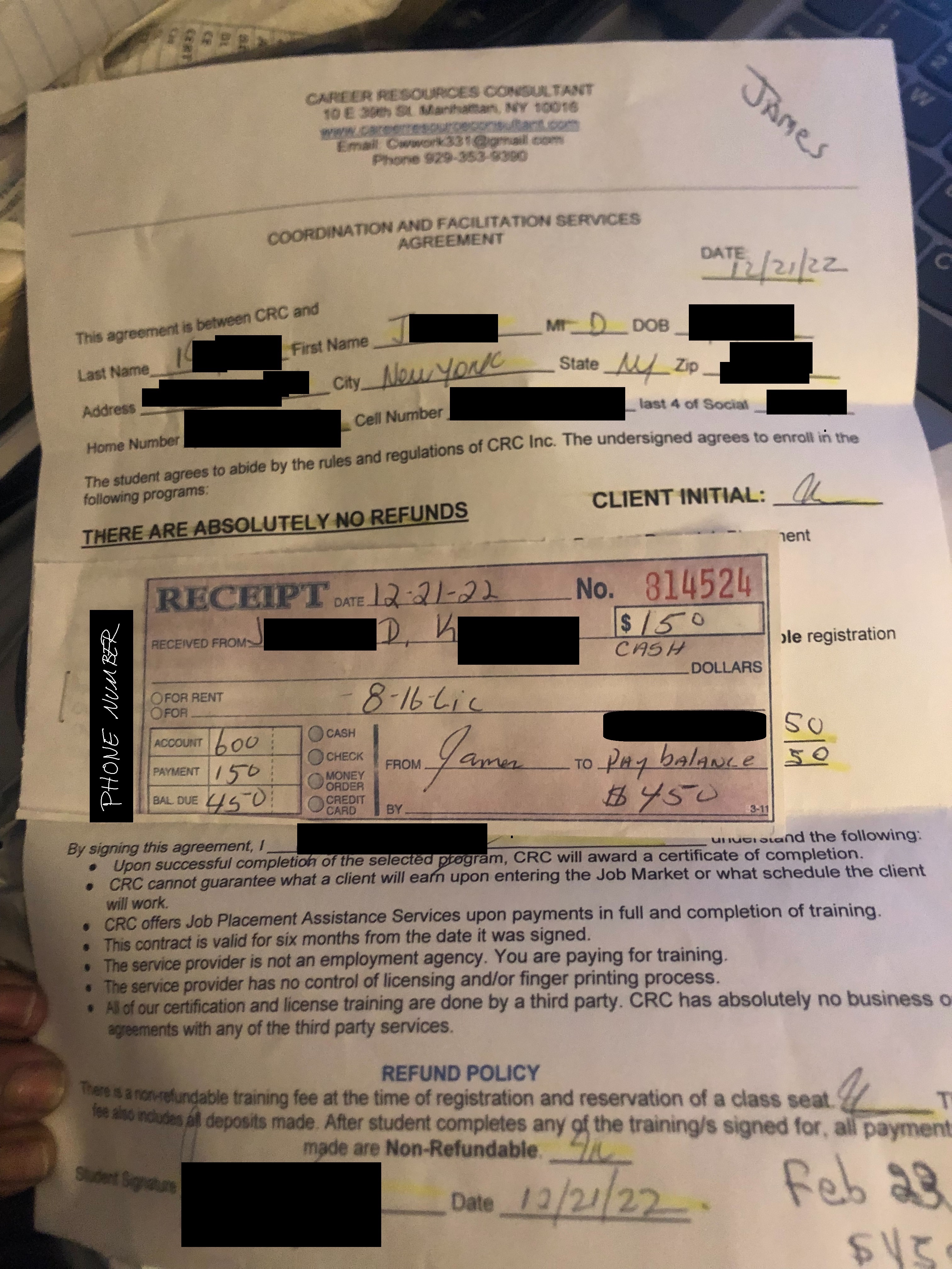You're paying a deposit of $150, and will need to pay the remaining $450 to get your free job placement. You have the option to pay in full, and get your free job placement as soon as your license comes in the mail. If you are no longer interested, as mentioned earlier the scammers will pressure you into just continuing.